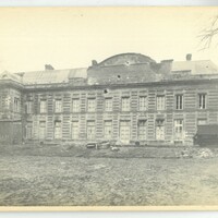 La façade du Palais Fénelon sur le jardin public endommagée lors de la libération 1918.
