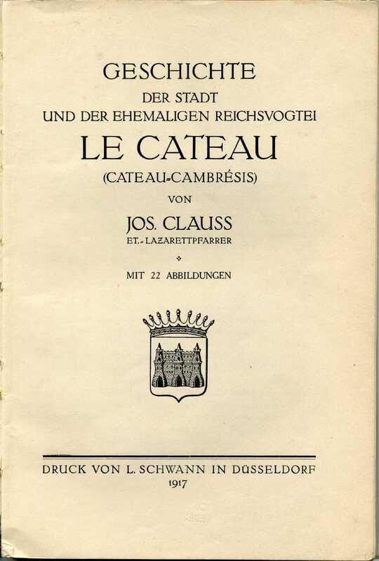 En 1917, l'éditeur de Schwann, installé à Düsseldorf fait paraître un ouvrage d'une soixantaine de pages, illustré de 22 photographies. L'auteur, Joseph Clauss, aumônier militaire et pasteur luthérien séjourne au Cateau pendant la Première Guerre mondiale.