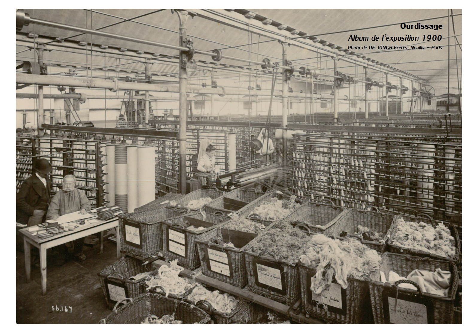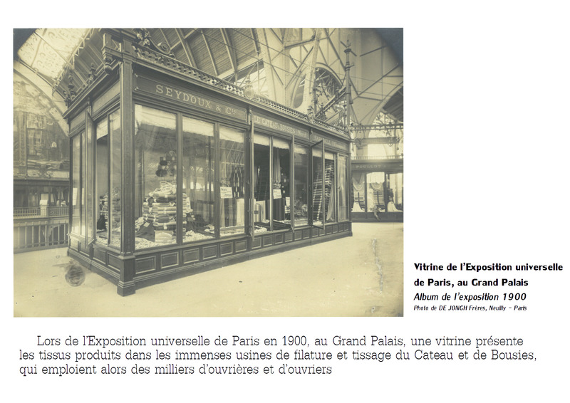 Lors de l'Exposition Universelle de Paris en 1900, au Grand Palais, une vitrine présente les tissus produits dans les immenses usines de filature et de tissage du Cateau et de Bousies, qui emploient alors des milliers d'ouvriers et d'ouvrières.