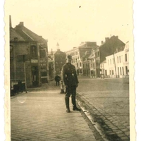 Soldat allemand posant sur le pont rue Charles Seydoux au Cateau