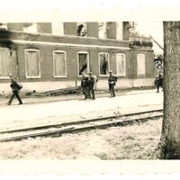 Patrouille de soldats allemands dans les rues du Cateau en 1940