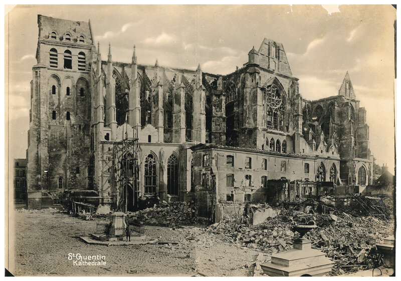 Photographie de la cathédrale de Saint-Quentin détruite