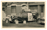 Vue arrière, sur la sono., d'une voiture 'Radiomatic' exposée lors d'un rallye international en 1935Date : 1935Type : Image, PhotographieMots‑clés : CIACR de 1935, Évènements, Carte postale allemande -
