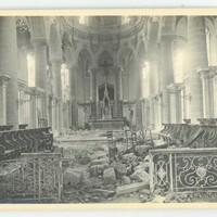 Une autre partie intérieur de l'Abbatiale endommagée lors de la libération en 1918.