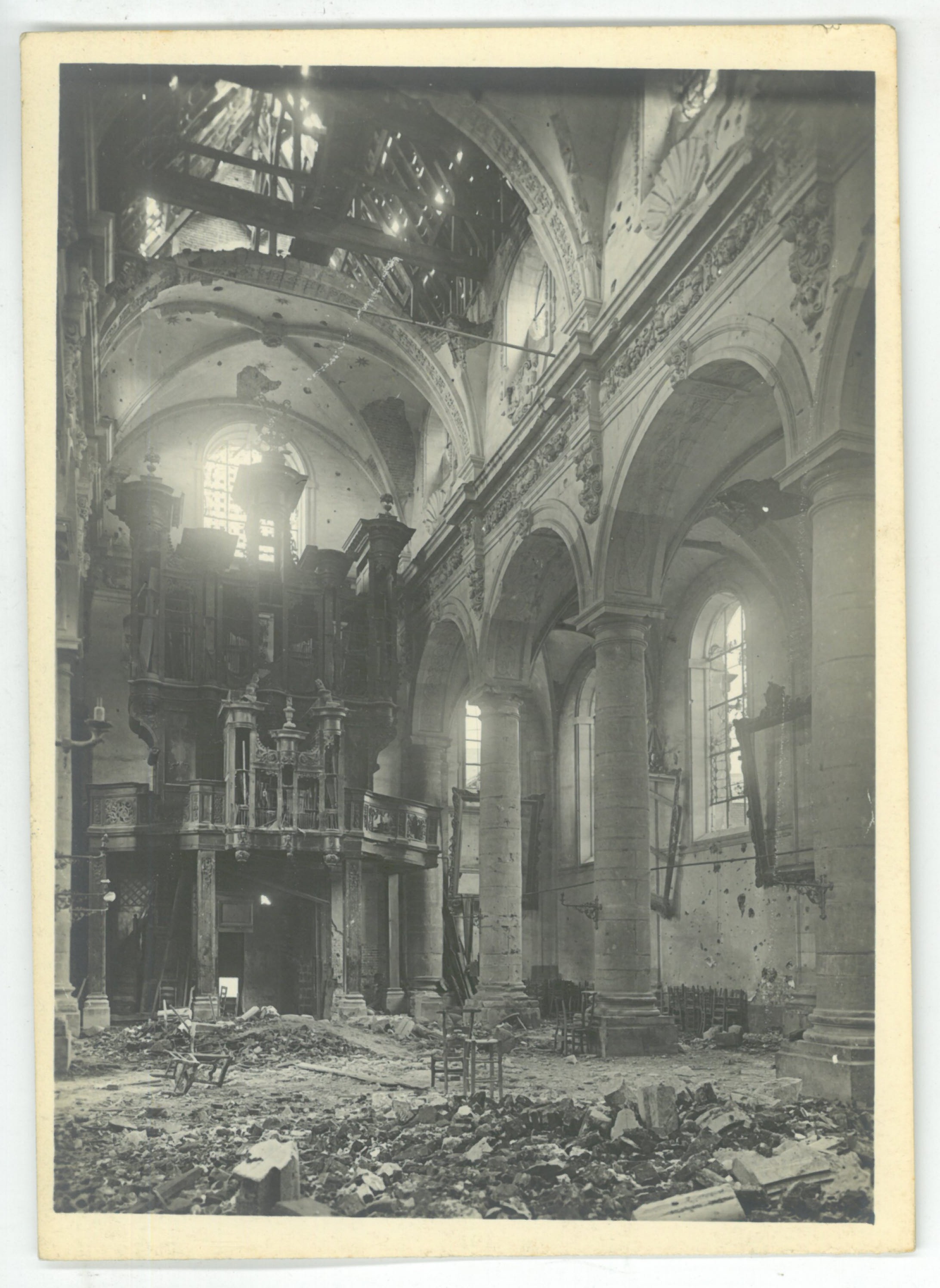 Les orgues de l'Abbatiale Saint-Martin endommagés lors de la libération en 1918.