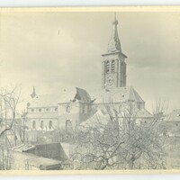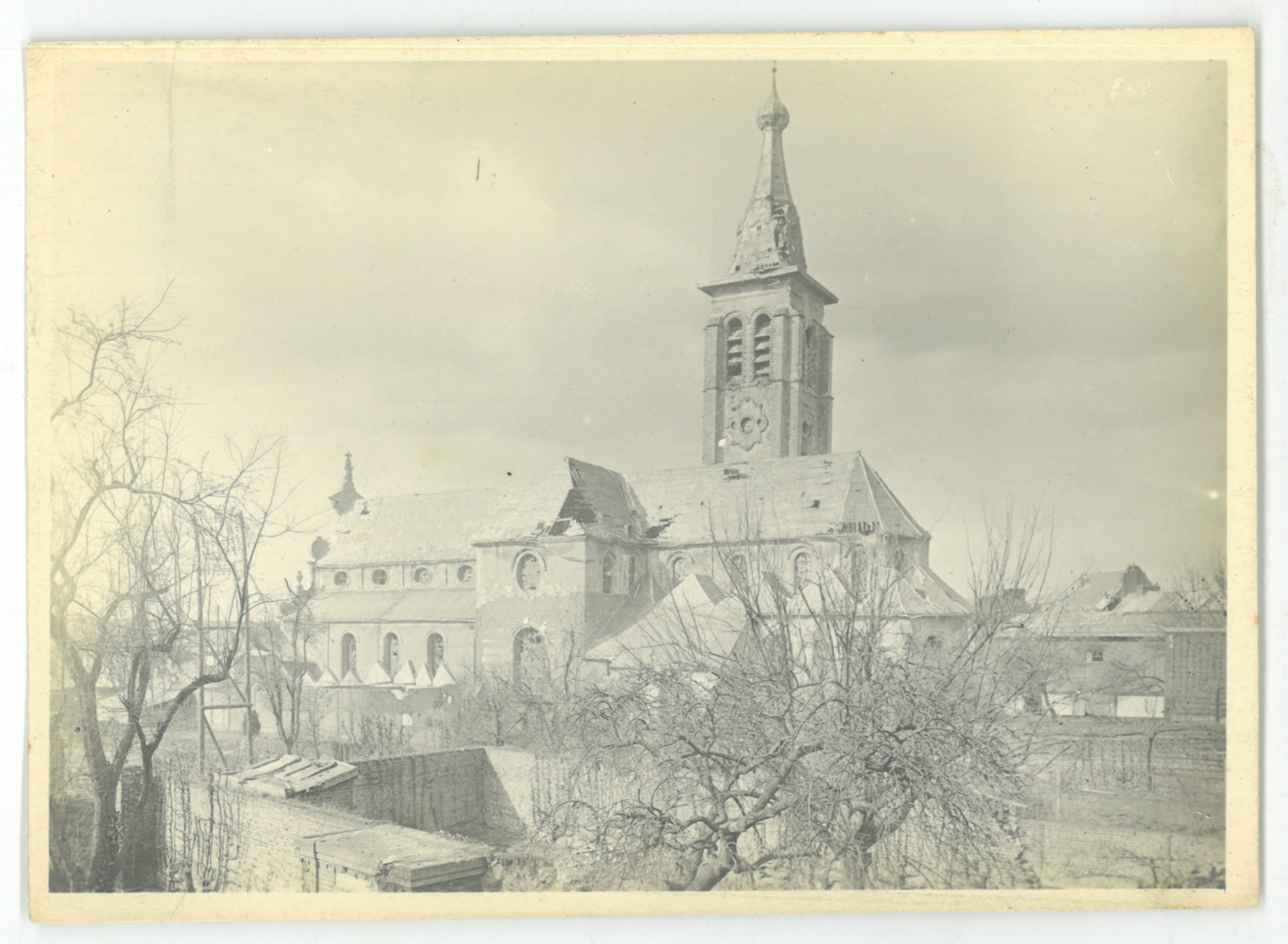 L' Abbatiale Saint-Martin endommagée lors de la libération en 1918.