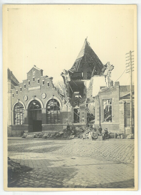 Le Marché couvert vue de l’ extérieur complètement détruit lors de la libération 1918.