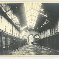 L'intérieur du Marché couvert avec ses cases pour les marchands endommagé lors de la libération 1918.