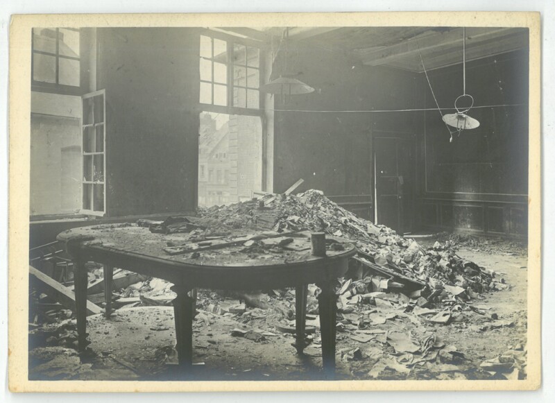 La salle des mariages (actuel salle du conseil municipal) endommagée lors de la libération 1918.