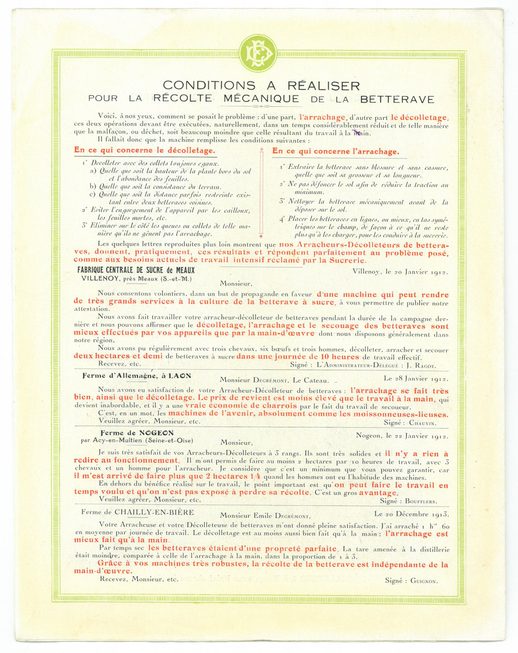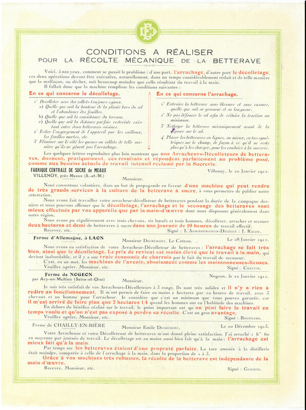 Brochure publicitaire - Établissements Degrémont - Le Cateau - 1922