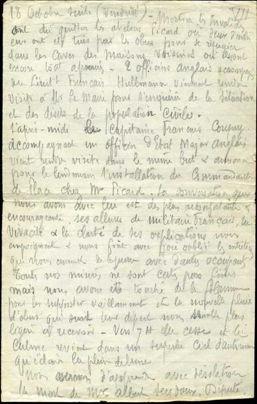 Témoignage d’Emile Picard, civil ayant vécu la libération de la Ville par les anglais en 1918.