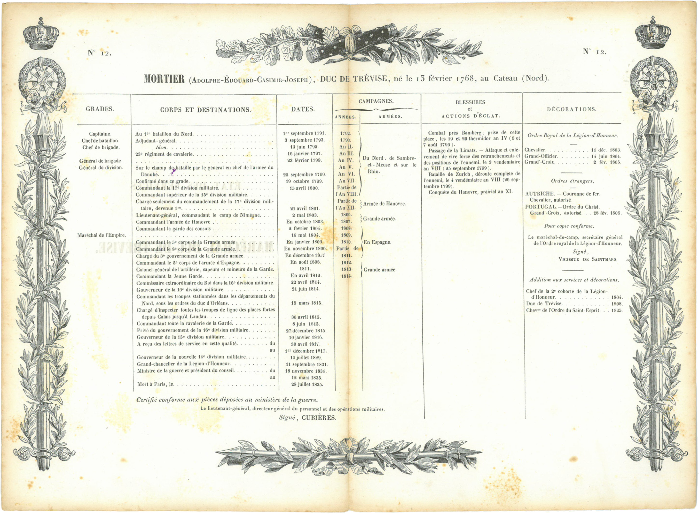 États de service du Maréchal Mortier