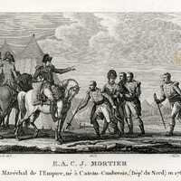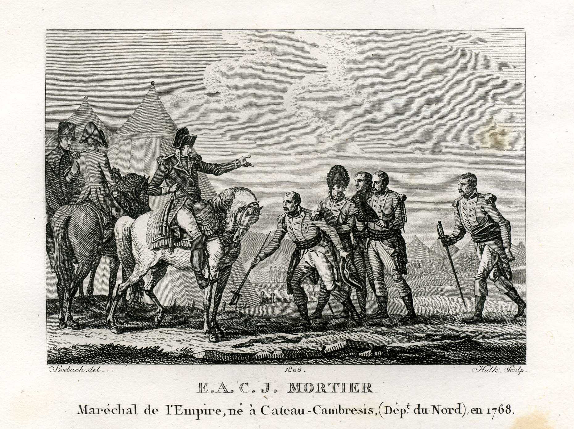 Biographie et gravure de Napoléon accompagné du Maréchal Mortier