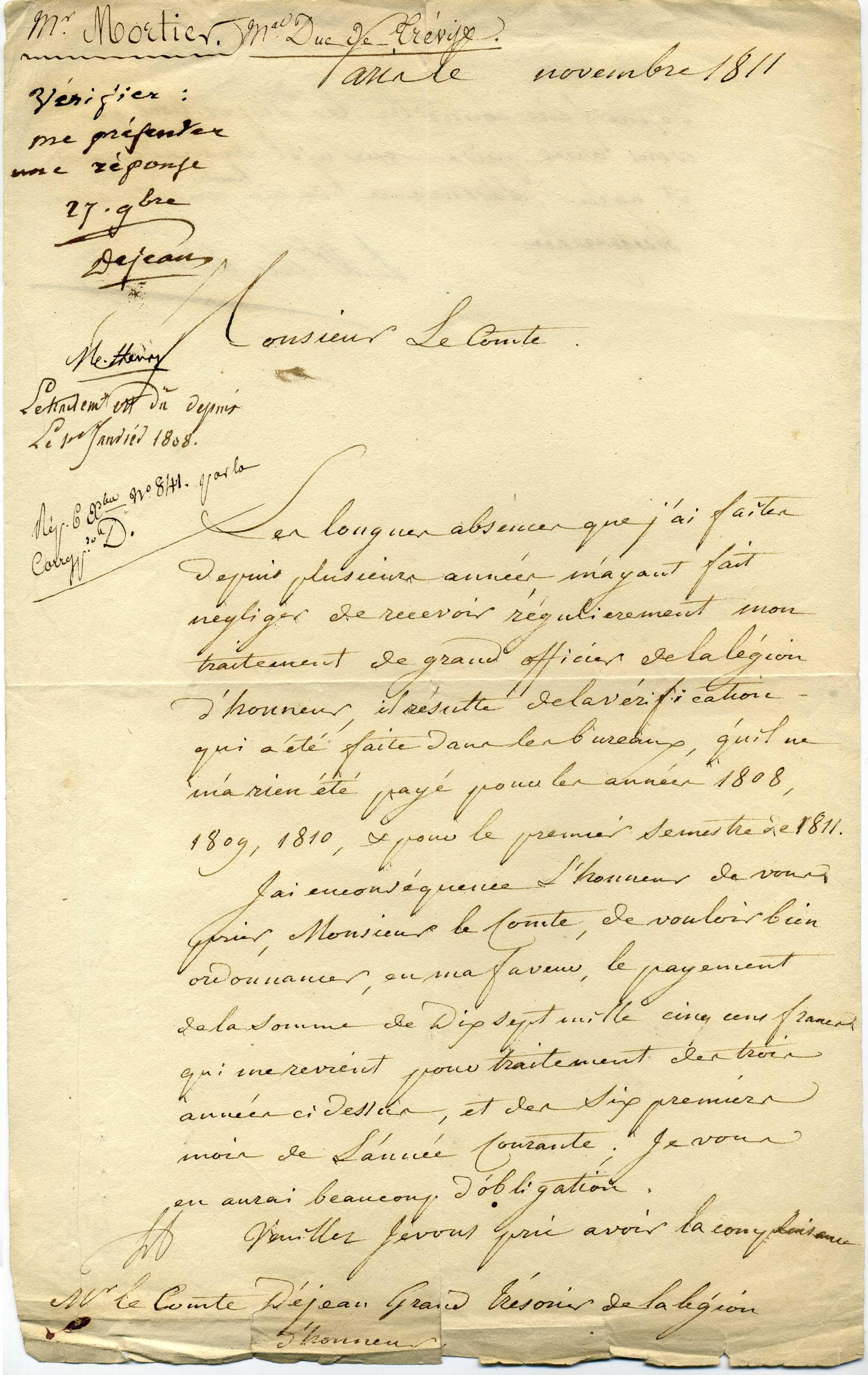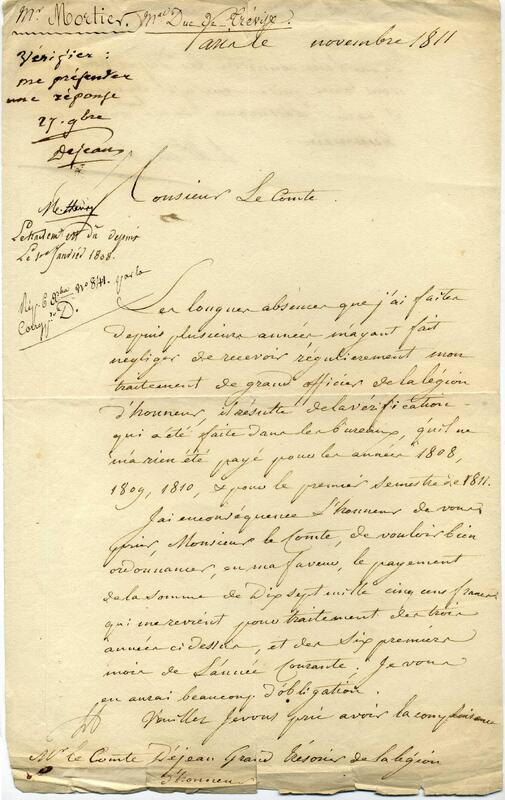 Lettre de réclamation du Maréchal Mortier