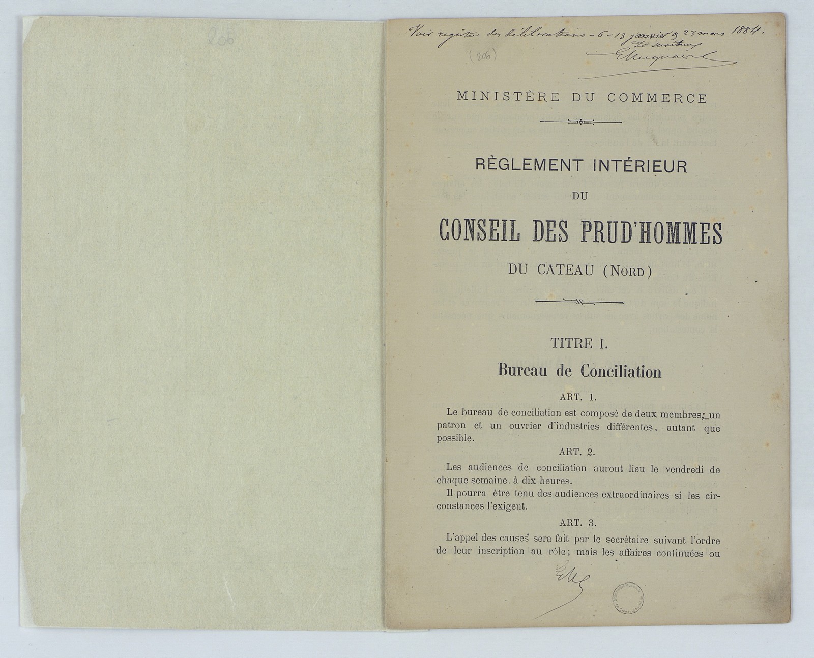 Règlement intérieur du Conseil des Prud'hommes du Cateau (Nord)