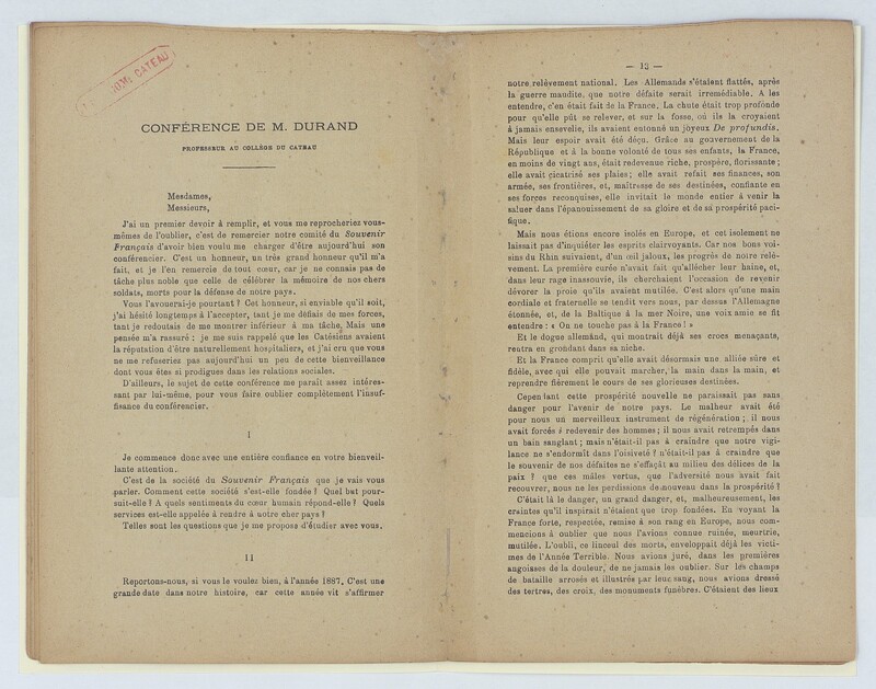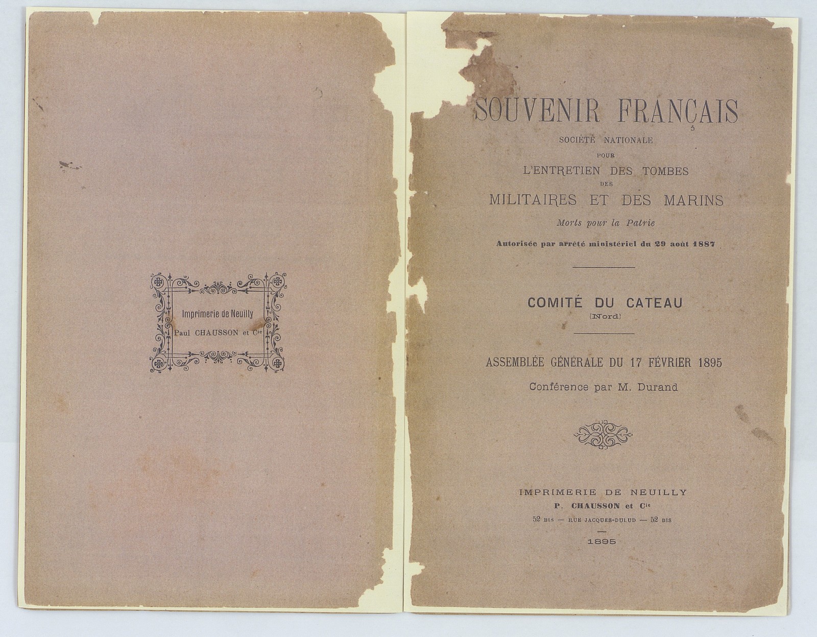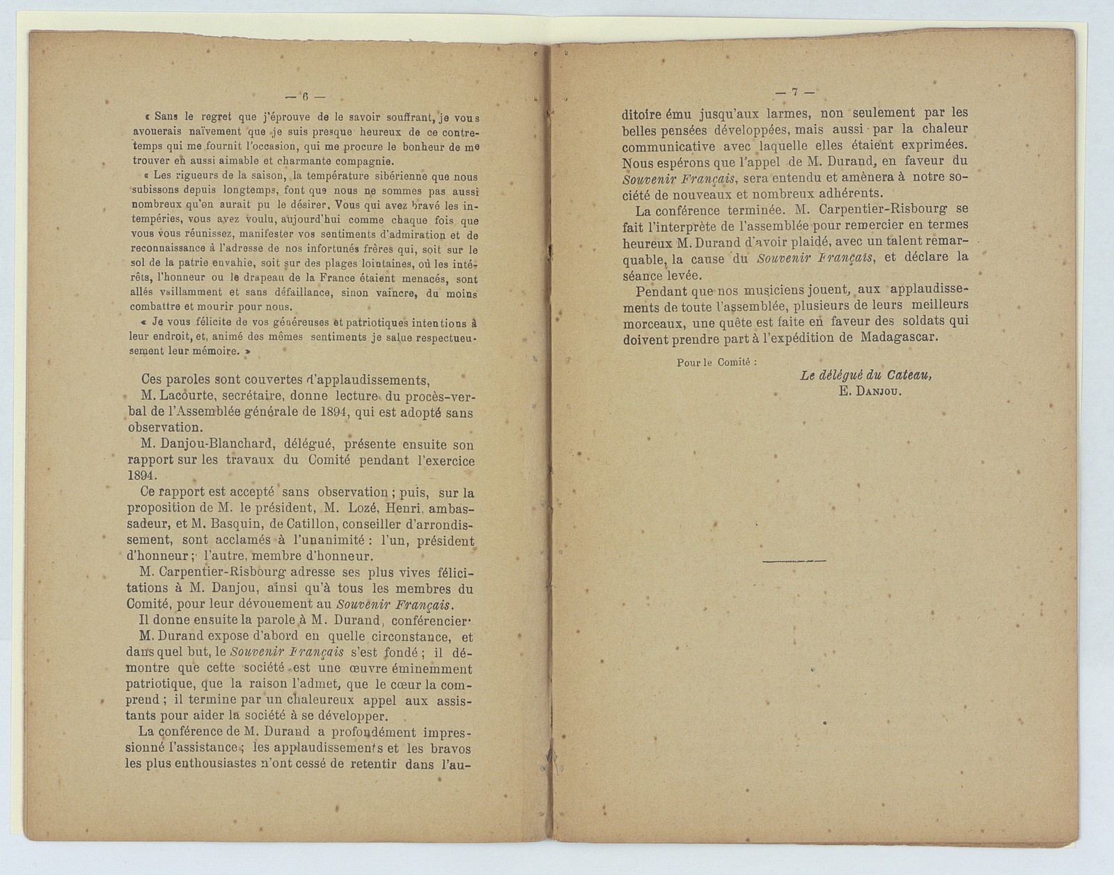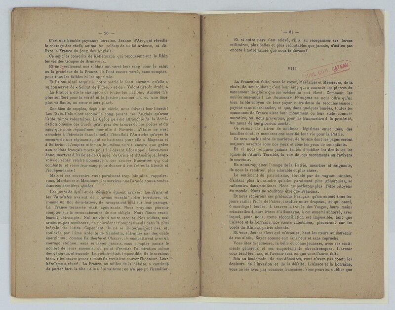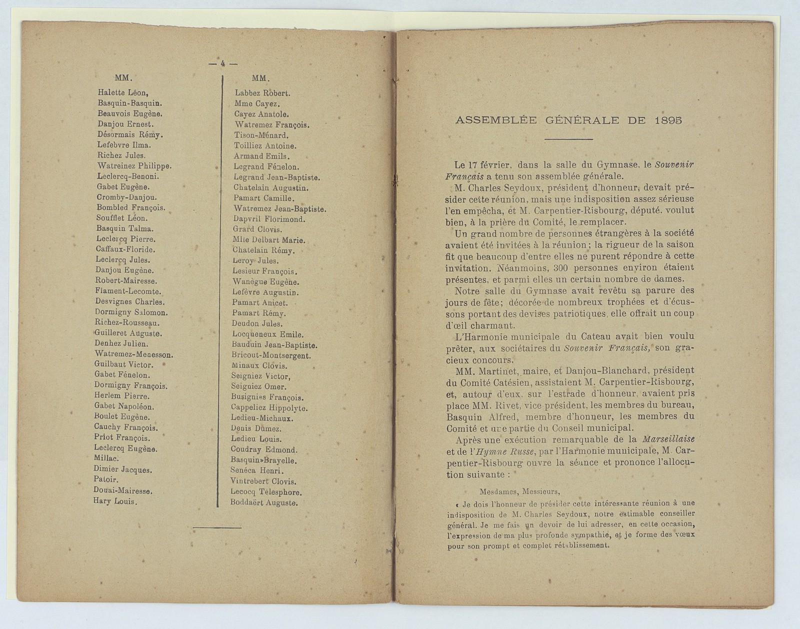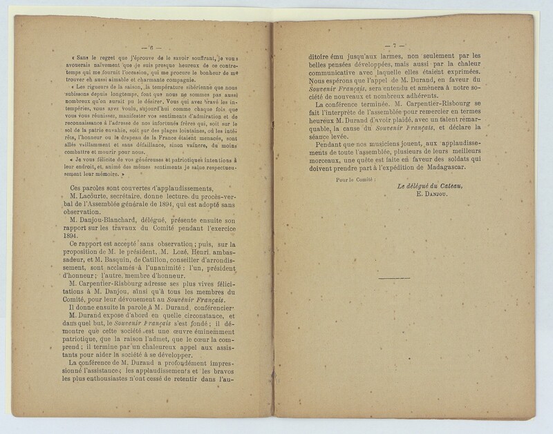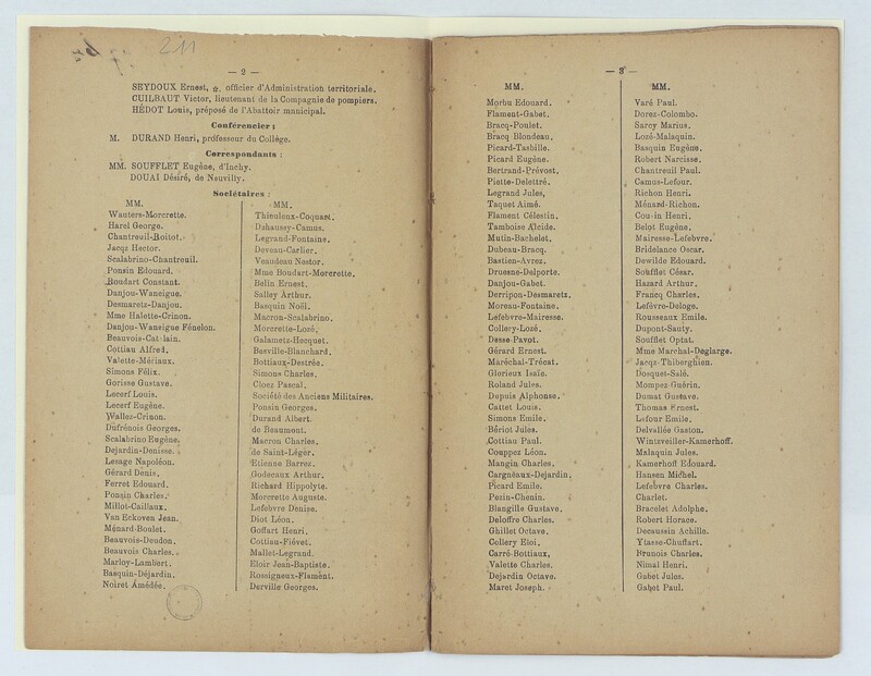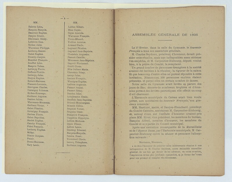 Souvenir français, assemblée générale du Cateau du 17 février 1895