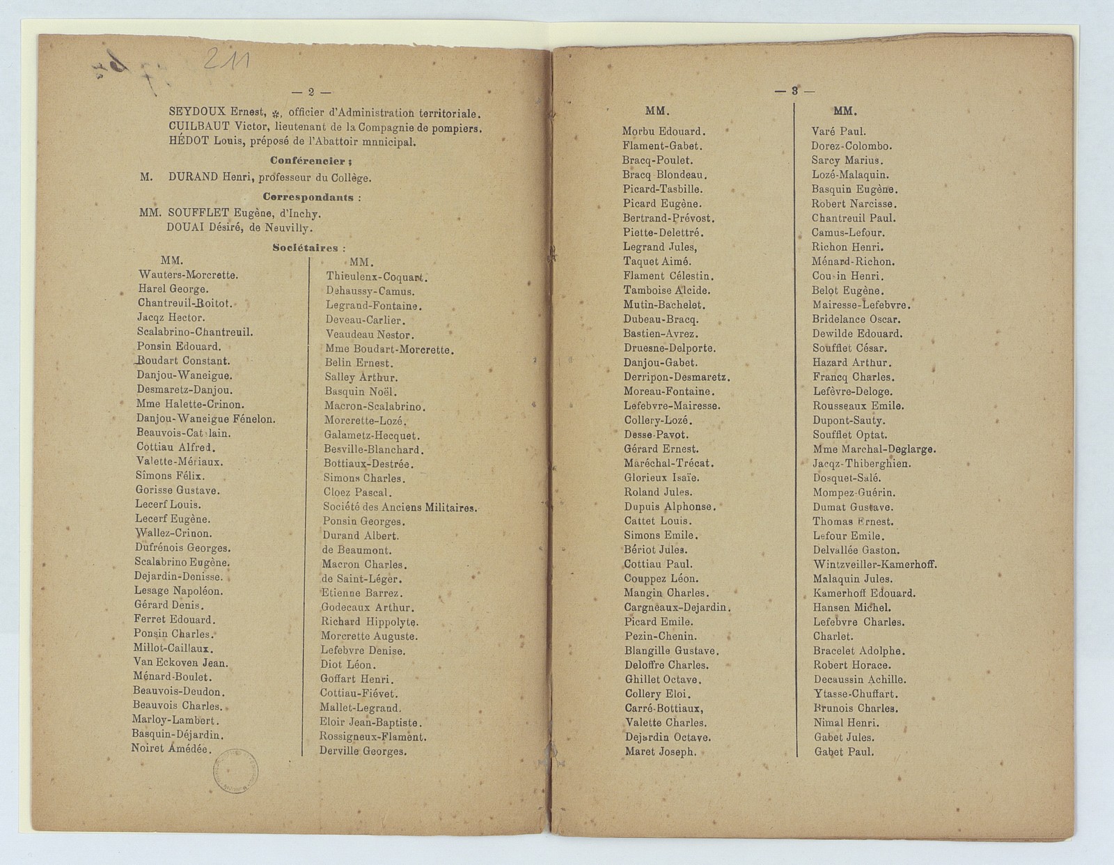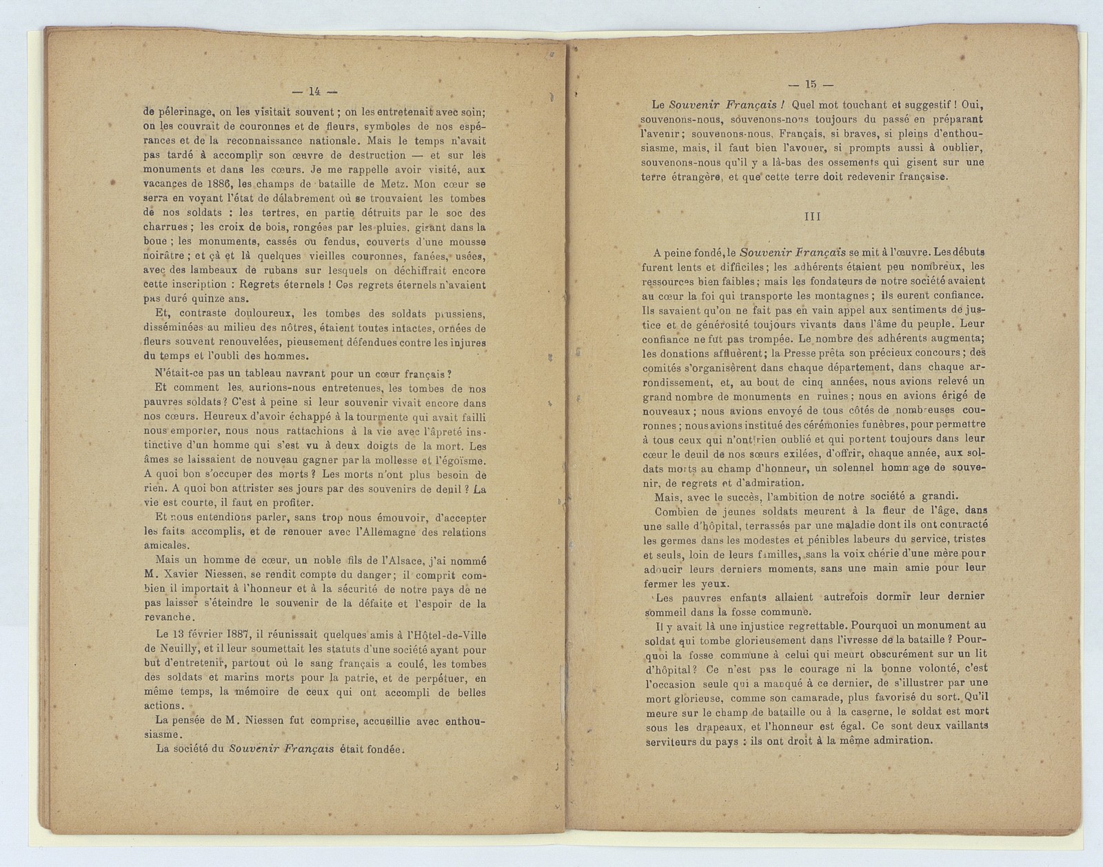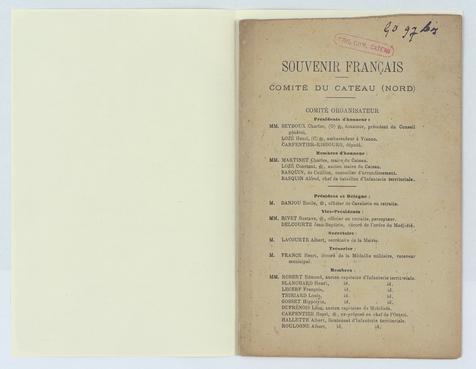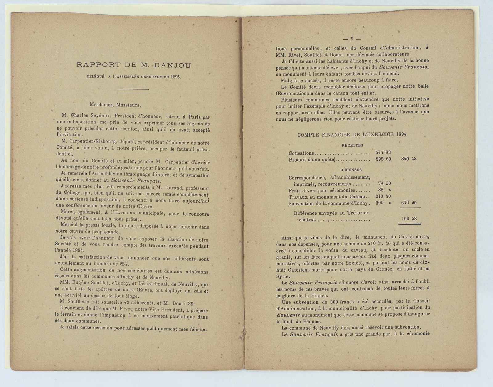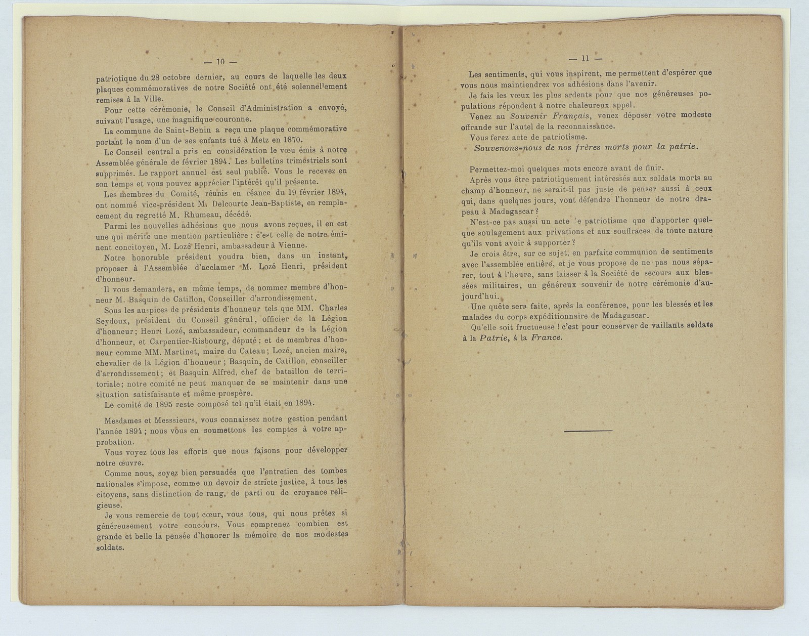 Souvenir français, assemblée générale du Cateau du 17 février 1895