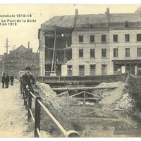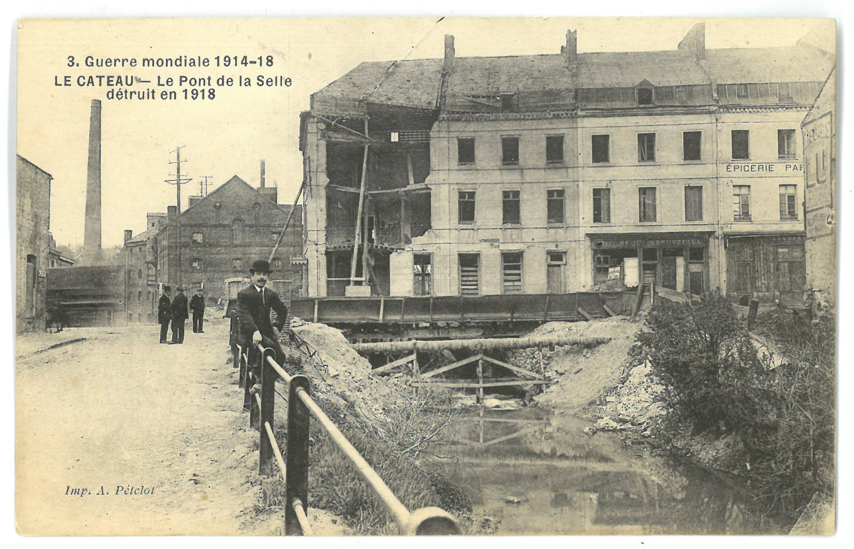 Carte postale du pont de la Selle en partie détruit après la libération d'octobre 1918.