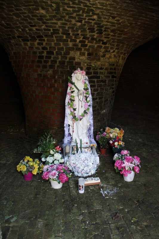 Cette butte utilisée où siège la Vierge Marie est une ancienne cave reconvertie.