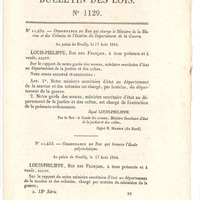 Bulletin des lois n°1129 de Louis - Philippe Ier, roi des Français, du 22 août 1844