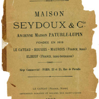 Livret de présentation des Établissements Seydoux et Cie au Cateau, de leurs investissements institutionnels dans la ville du Cateau et des récompenses recueillies lors des précédentes expositions.