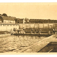 Groupe de baigneurs à la piscine extérieure du Cateau