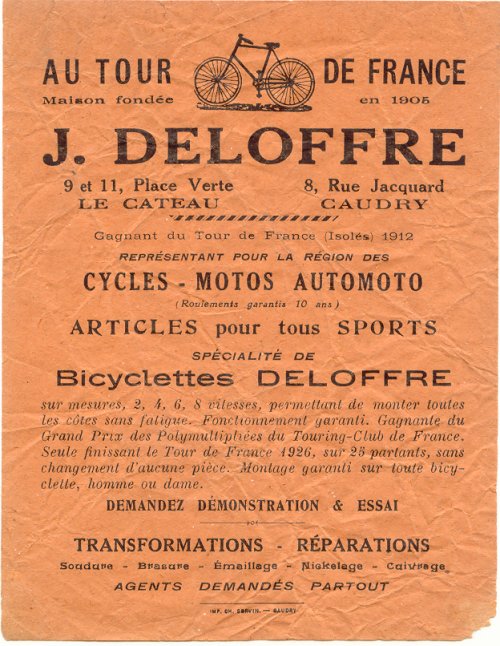 Affiche publicitaire du magasin "Au tour de France" géré par Jules Deloffre