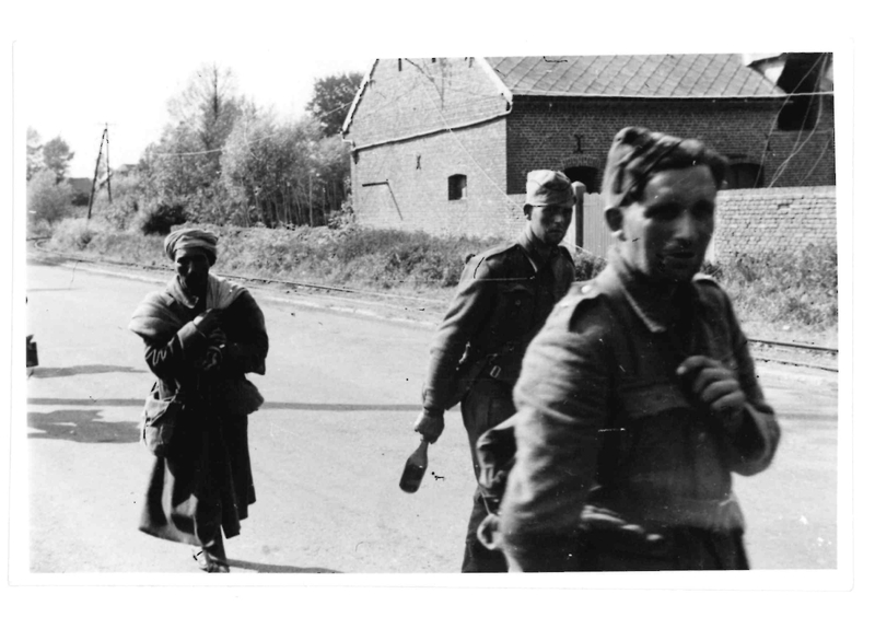 Prisonnier maghrébin entouré de soldats allemands hilares en mai 1940
