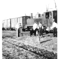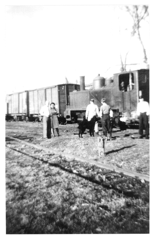 Locomotive à vapeur et quelques personnes à la gare du Cambrésis à le Cateau en 1943