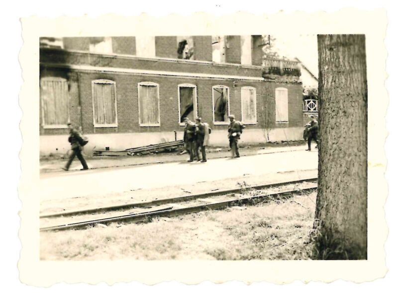 Patrouille de soldats allemands dans les rues du Cateau en 1940