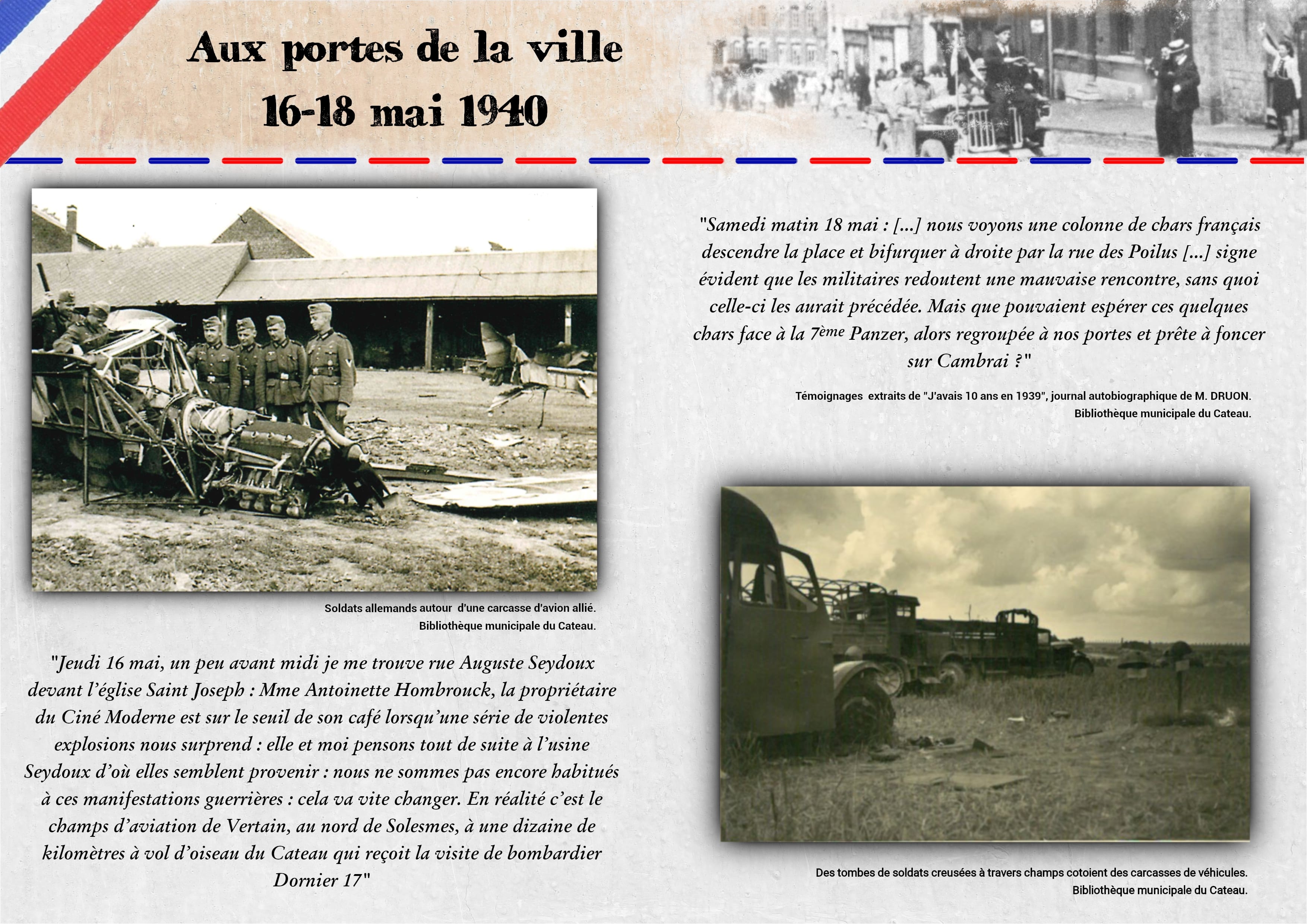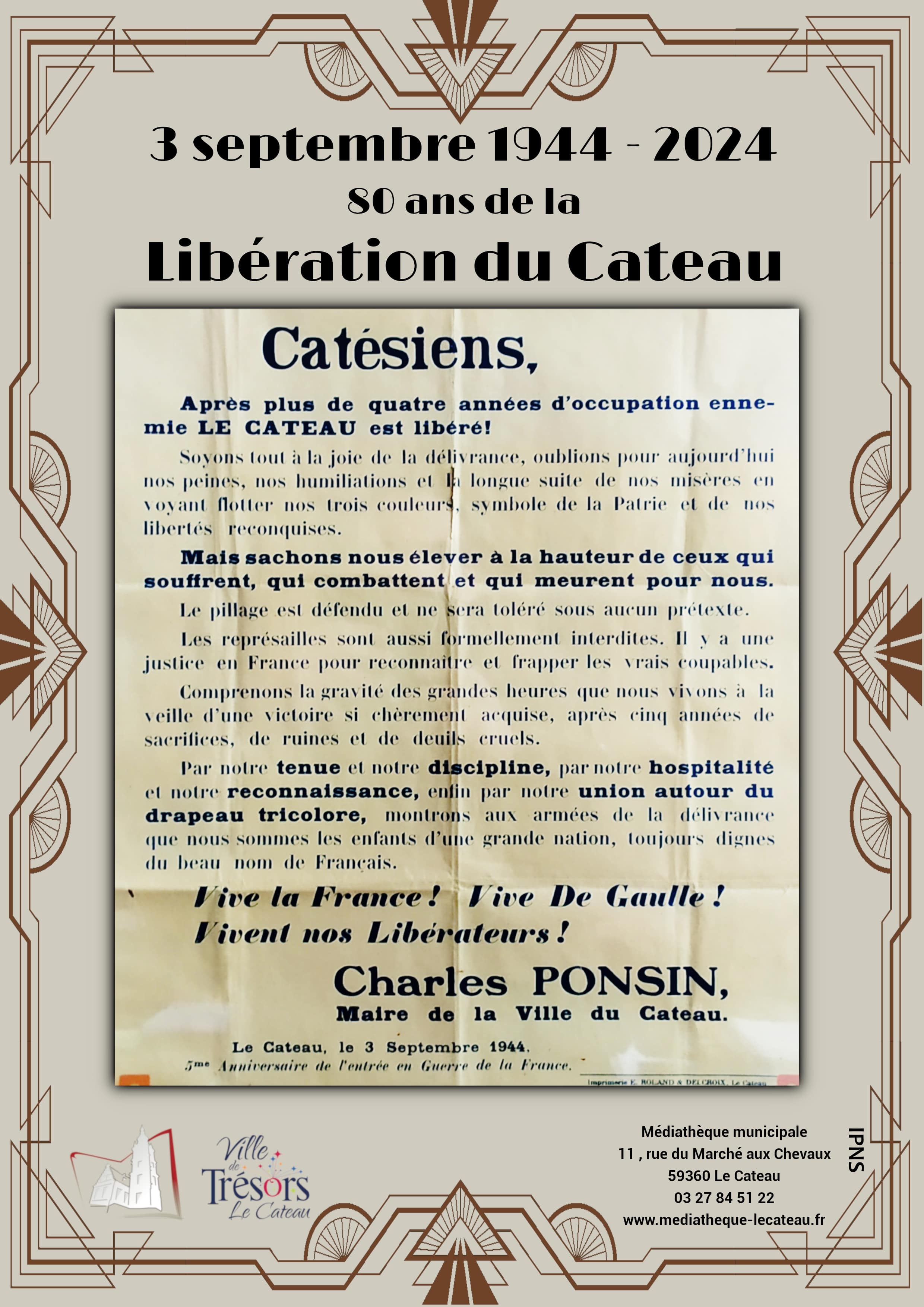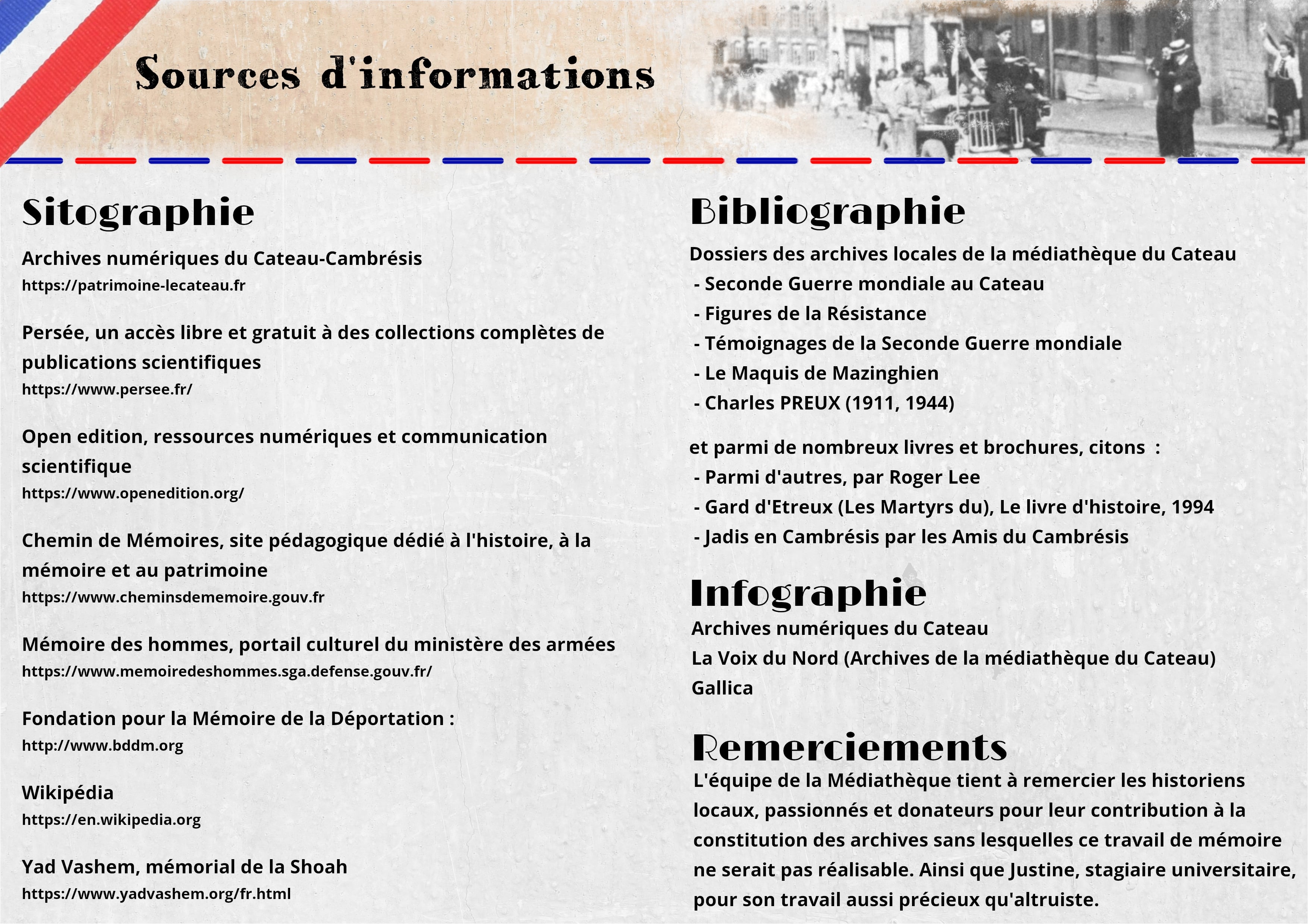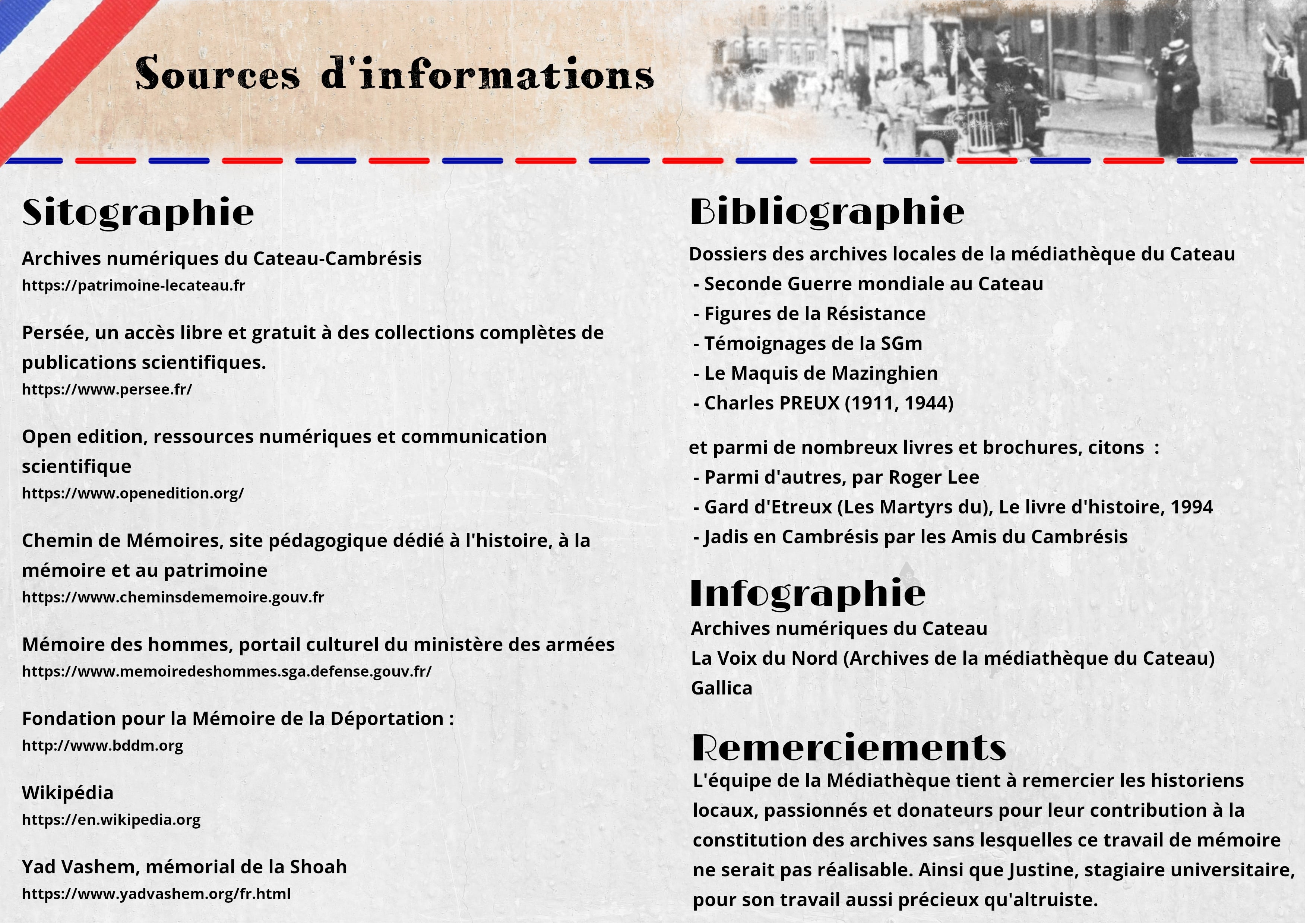 A l'occasion des 80 ans de la libération du Cateau, l'équipe de la médiathèque a décidé de sortir ses archives afin de célébrer nos héros d'hier et dresser une rétrospective de cette période trouble.