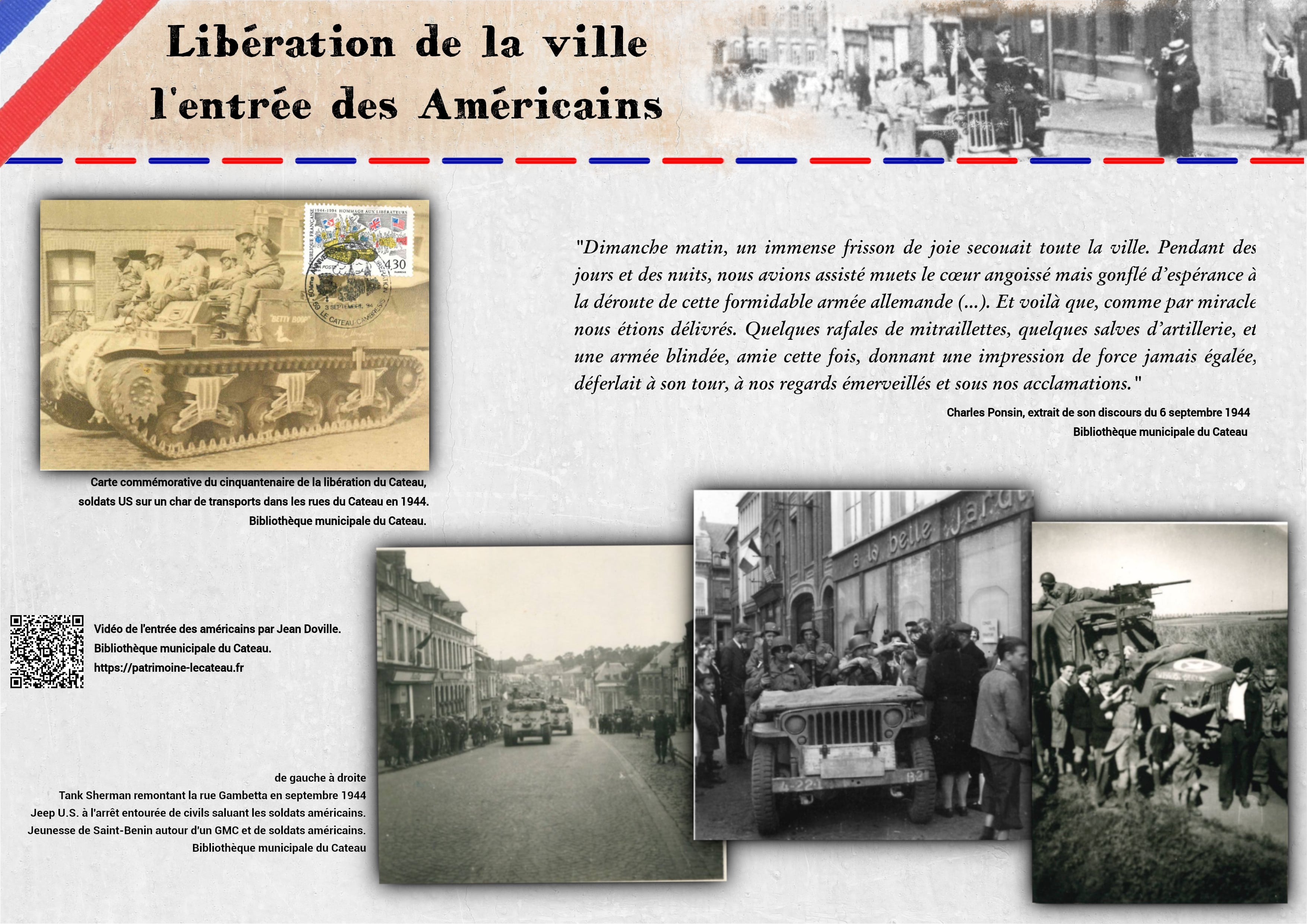Le 3 septembre 1944, les américains entrent au Cateau et libèrent la ville envahie depuis le 18 mai 1940.