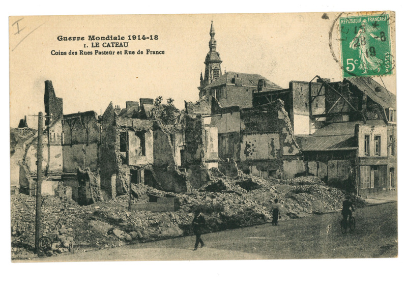 Rue Pasteur du Cateau détruite après la libération de de la Première Guerre mondiale