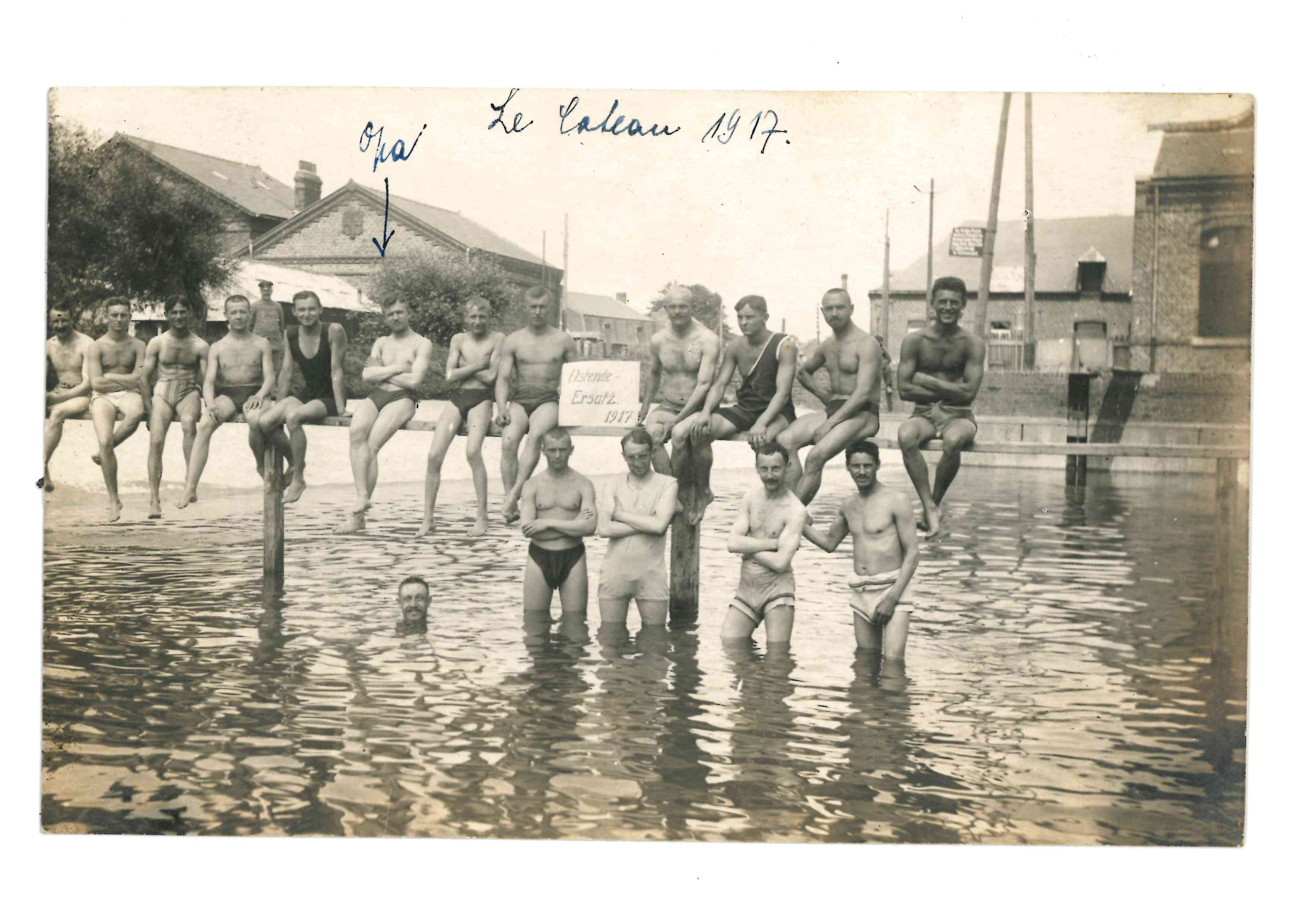 Soldats allemands se baignant dans la piscine extérieure du Cateau durant la Première Guerre mondiale