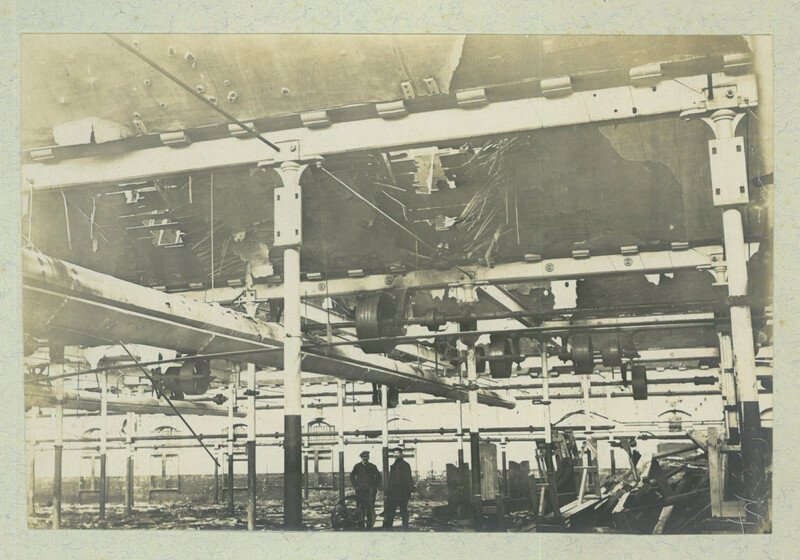 Photographie des usines Seydoux après la libération du Cateau en 1918