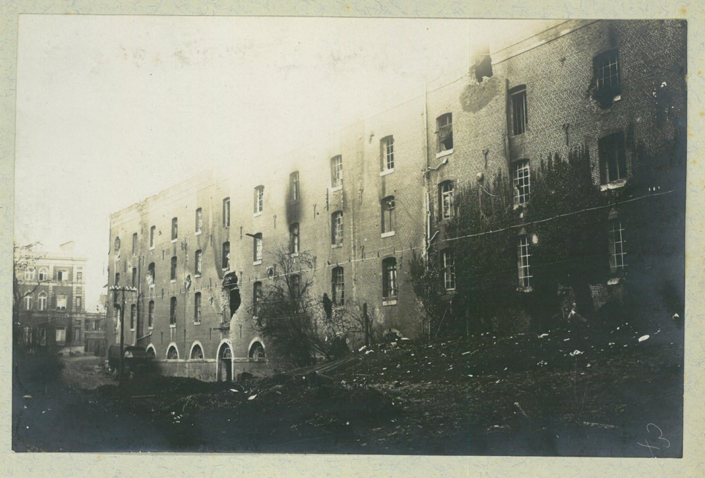 Photographie des usines Seydoux après la libération du Cateau en 1918