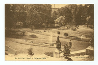 Le jardin public avec son jet d'eau, son bassin, ses arbres ses différentes fleurs.Créateur : AnonymeDate : 19.Type : Image, Image fixe, PhotographieMots‑clés : Palais Fénelon, Parc Fénelon, Palais Fénelon, Carte postale allemande -