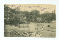 Le jet d'eau avec ses dames et une inscription sur la carte postale destinée a Mme Godard.Créateur : AnonymeDate : 1911-08-15Type : Image, Image fixe, PhotographieMots‑clés : Palais Fénelon, Parc Fénelon, Palais Fénelon, Carte postale allemande -